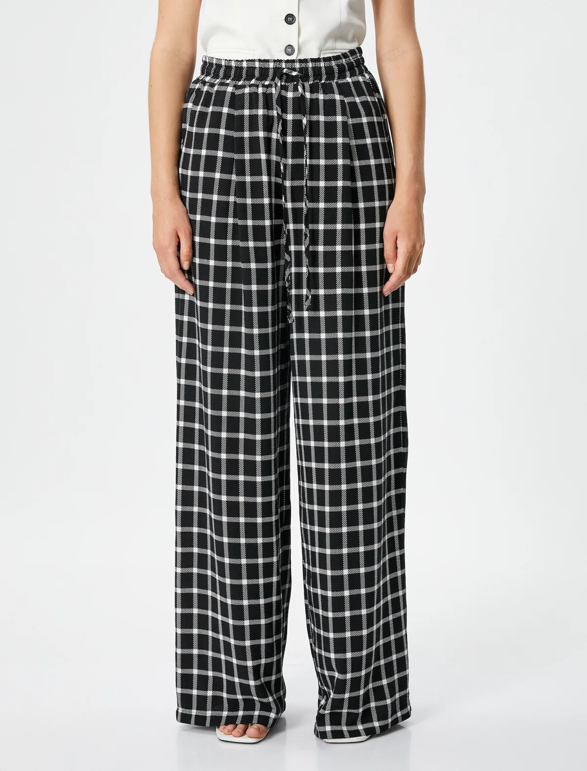 Design: Taille met trekkoord, Elastische taille/zoom, Zakken aan de zijkant; Materiaal: Viscose; Motief: Geruit; Details: Gedrapeerd; Extra's: All-over patroon, Gladde stof; Lengte: Lang/maxi; Pasvorm: Wide leg; Taillehoogte: High waist
