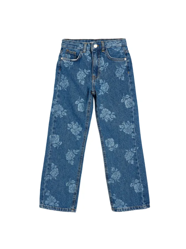 Design: Ritssluiting, 5-pocket-style; Type sluiting: Knoopsluiting; Materiaal: Denim; Motief: Bloemenprint; Extra's: All-over patroon, Riemlussen; Lengte: 7/8 lengte; Pasvorm: Regular