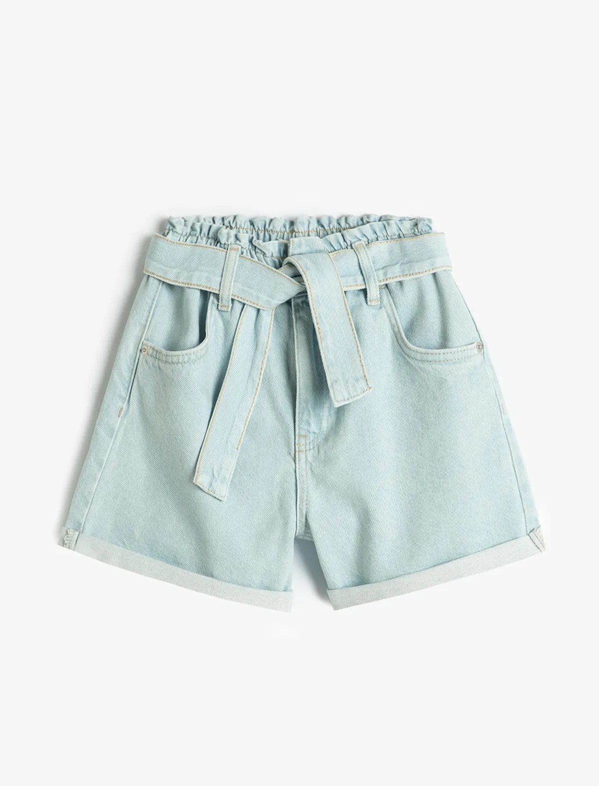 Design: Omgeslagen zoom; Type sluiting: Ritssluiting; Materiaal: Denim; Motief: Effen; Details: Gedrapeerd; Extra's: Riemlussen; Wassing: Blauw denim; Lengte: Kort/mini; Pasvorm: Regular