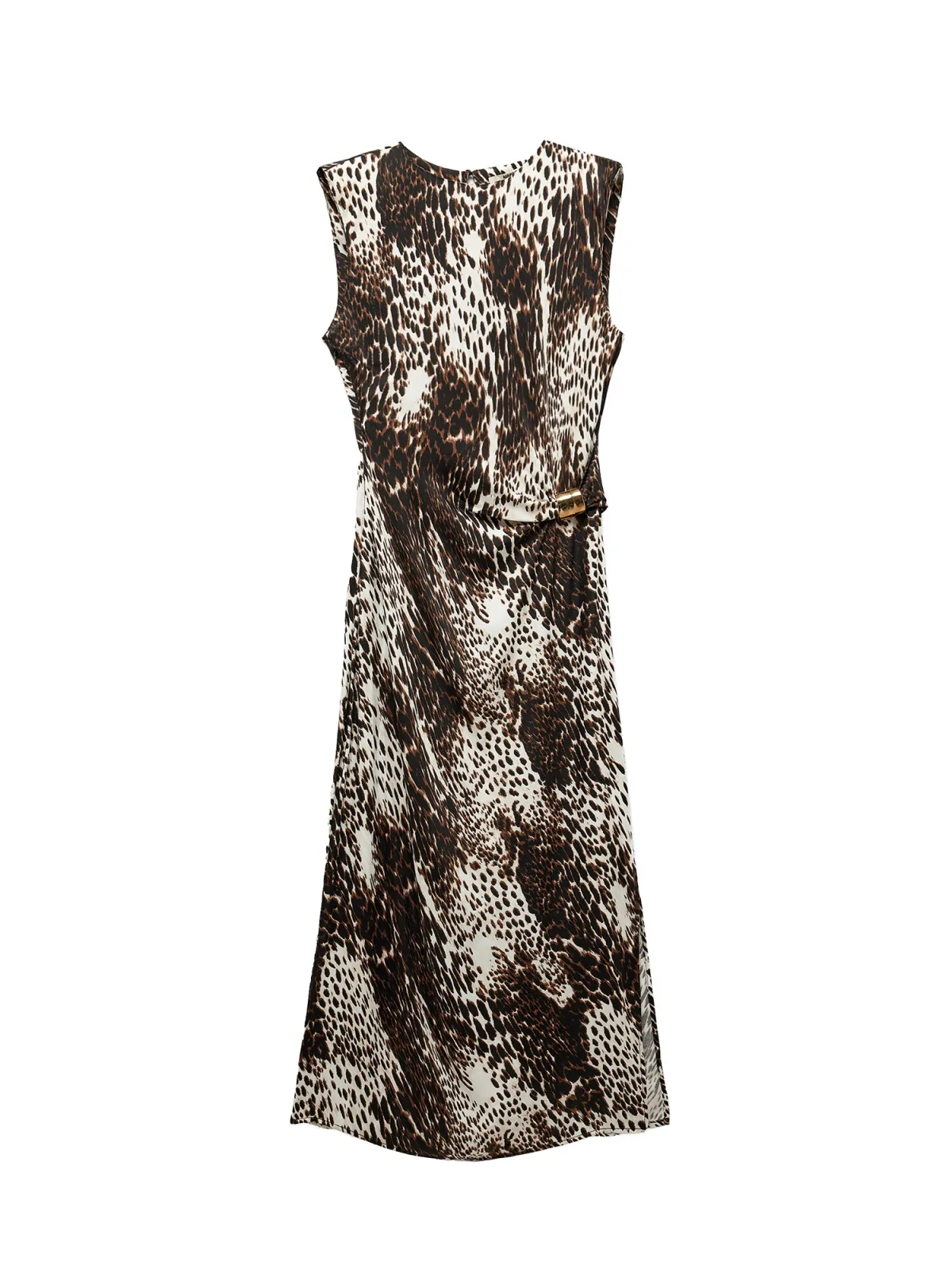 Design: Gevoerde zoom/rand, Keyholesluiting; Type sluiting: Knoopsluiting; Materiaal: Viscose; Halstype: Ronde hals; Motief: Dierenprint; Soort bandjes: Brede bandjes; Details: Cut-outs, Gedrapeerd; Extra's: All-over patroon; Lengte: 3/4 lengte; Snit: Getailleerd; Pasvorm: Normale pasvorm; Armlengte: Mouwloos