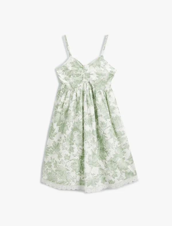 Design: Gevoerde zoom/rand; Materiaal: Katoen; Soort bandjes: Spaghettibandjes; Details: Gedrapeerd; Extra's: All-over patroon; Lengte: Knielengte; Pasvorm: Normale pasvorm; Armlengte: Mouwloos