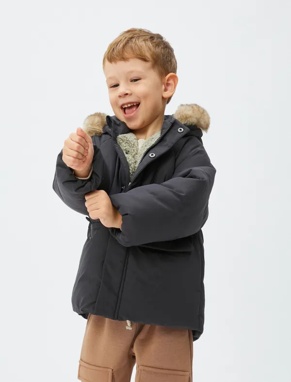 Design: Verborgen rits, Opzet-/flapzak; Type sluiting: Ritssluiting; Voering: Warm gevoerd; Motief: Effen; Extra's: Met faux bont trim; Pasvorm: Normale pasvorm