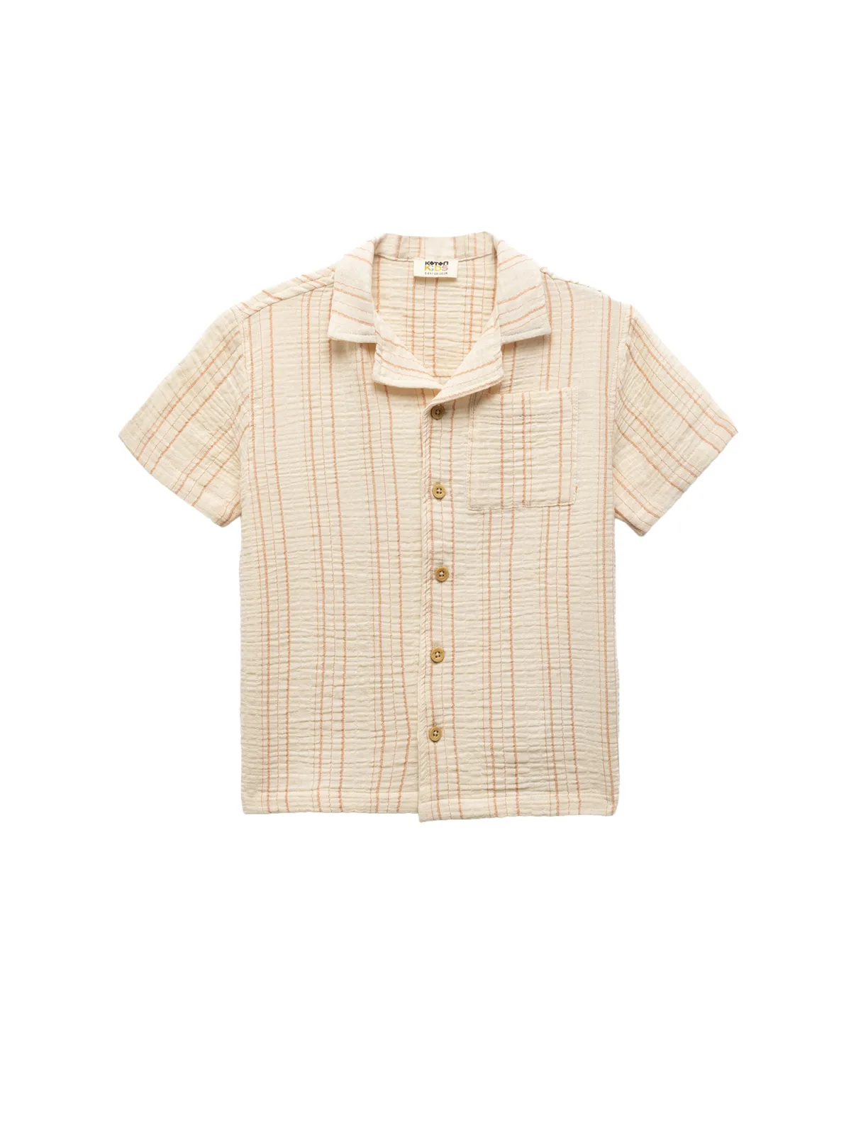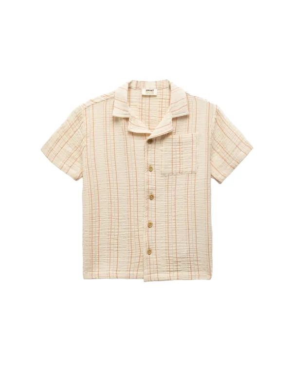 Design: Revers kraag, Borstzak; Type sluiting: Knoopsluiting; Materiaal: Katoen; Motief: Krijtstrepen; Extra's: All-over patroon, Op staal naden, Crinkle look; Pasvorm: Regular fit; Armlengte: Halve mouw