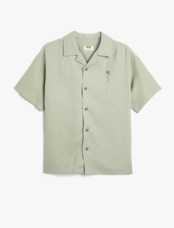 Design: Revers kraag, Overcut schouder; Type sluiting: Knoopsluiting; Materiaal: Linnen; Motief: Motiefprint; Extra's: Applicaties, Lichte stof; Pasvorm: Regular fit; Armlengte: Driekwart mouw