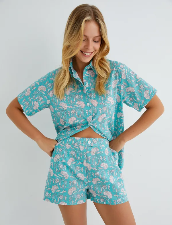 Design: Gevoerde zoom/rand, Zakken aan de zijkant; Materiaal: Katoen; Motief: Bloemenprint; Extra's: All-over patroon, Voelt zacht aan; Lengte: Kort/mini