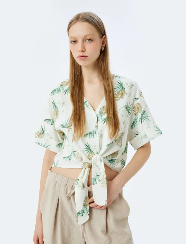 Design: Overcut schouder, Om te knopen/binden; Materiaal: Jersey; Halstype: V-hals; Motief: Bloemenprint; Pasvorm: Normale pasvorm; Armlengte: Halve mouw; Lengte: Korte pasvorm