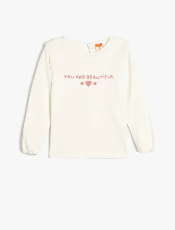 Design: Keyholesluiting; Type sluiting: Knoopsluiting; Materiaal: Jersey; Halstype: Ronde hals; Motief: Tekst print; Details: Cut-outs, Borduursels, Gedrapeerd; Extra's: Voelt zacht aan; Pasvorm: Normale pasvorm; Armlengte: Lange mouw; Lengte: Normale lengte