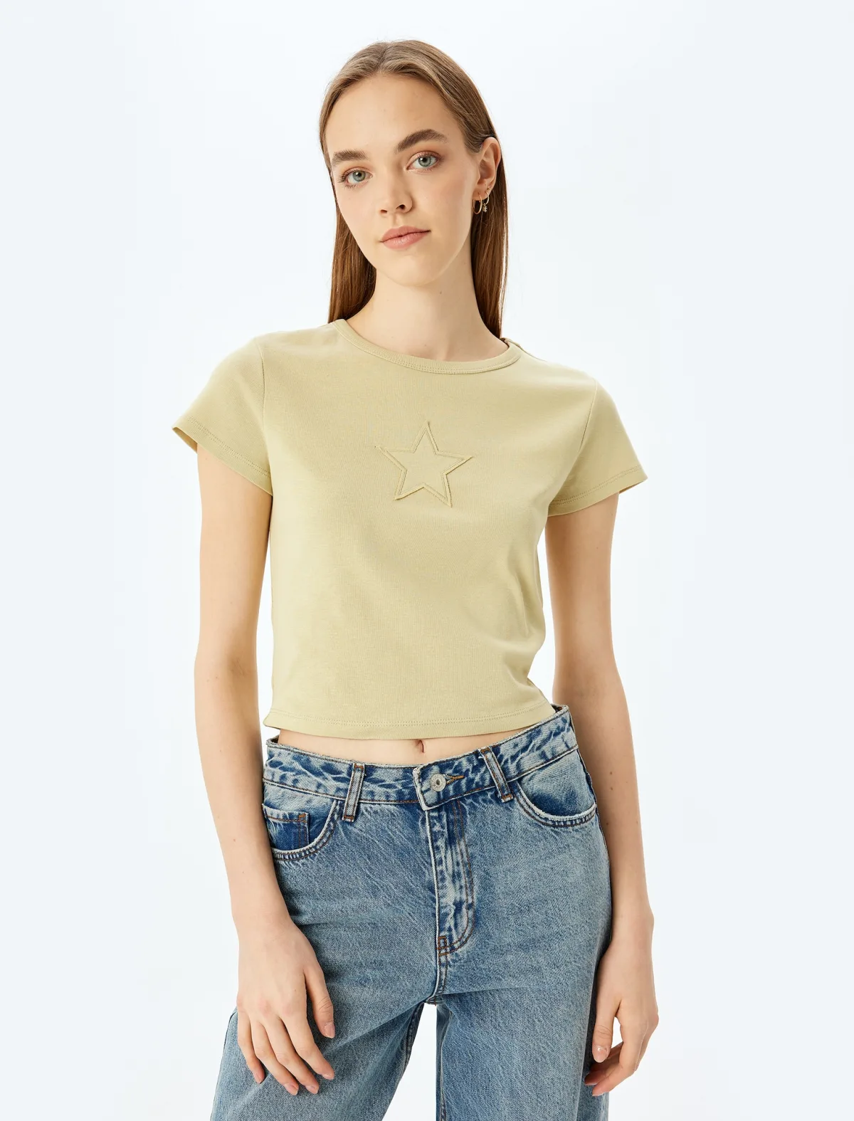 Design: Gevoerde zoom/rand; Materiaal: Katoen; Halstype: Ronde hals; Motief: Motiefprint; Details: Borduursels; Extra's: Op staal naden; Pasvorm: Slanke pasvorm; Armlengte: Kwartmouw; Lengte: Korte pasvorm