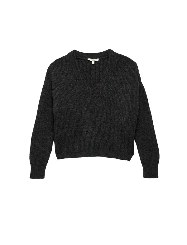 Design: Rechte zoom; Materiaal: Knitwear; Halstype: V-hals; Motief: Effen; Extra's: Met textuur; Pasvorm: Normale pasvorm; Armlengte: Lange mouw; Lengte: Korte pasvorm