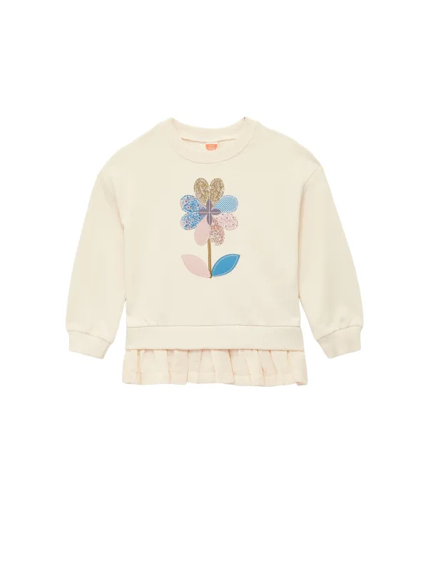 Design: Geribbelde kraag, Geribd ceintuurtje; Materiaal: Sweatstof; Halstype: Ronde hals; Motief: Motiefprint; Details: Ruches; Extra's: Voelt zacht aan; Pasvorm: Losse pasvorm; Armlengte: Lange mouw; Lengte: Normale lengte