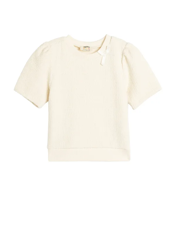 Design: Geribbelde kraag, Rechte zoom; Materiaal: Sweatstof; Halstype: Ronde hals; Motief: Effen; Details: Gedrapeerd; Extra's: Applicaties, Gestructureerd oppervlak; Pasvorm: Normale pasvorm; Armlengte: Halve mouw; Lengte: Normale lengte