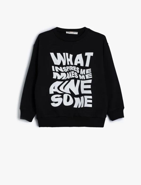 Design: Geribbelde kraag; Materiaal: Sweatstof; Halstype: Ronde hals; Motief: Tekst print; Extra's: Voelt zacht aan; Pasvorm: Normale pasvorm; Armlengte: Lange mouw