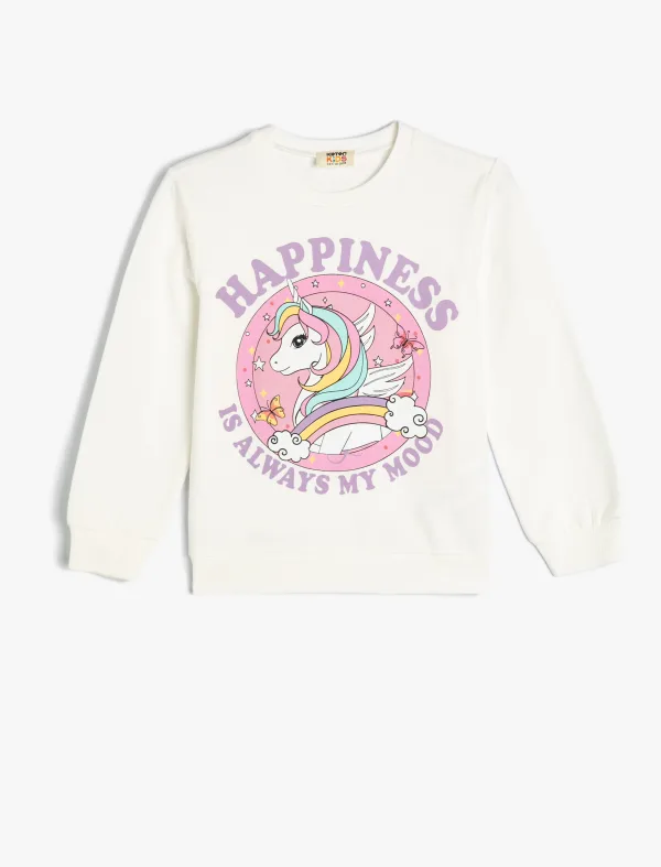 Met drukwerk Glitter afdruk eenhoorn Normaal zonder zak Normale lengte Lange mouw Ronde kraag Sweatshirt