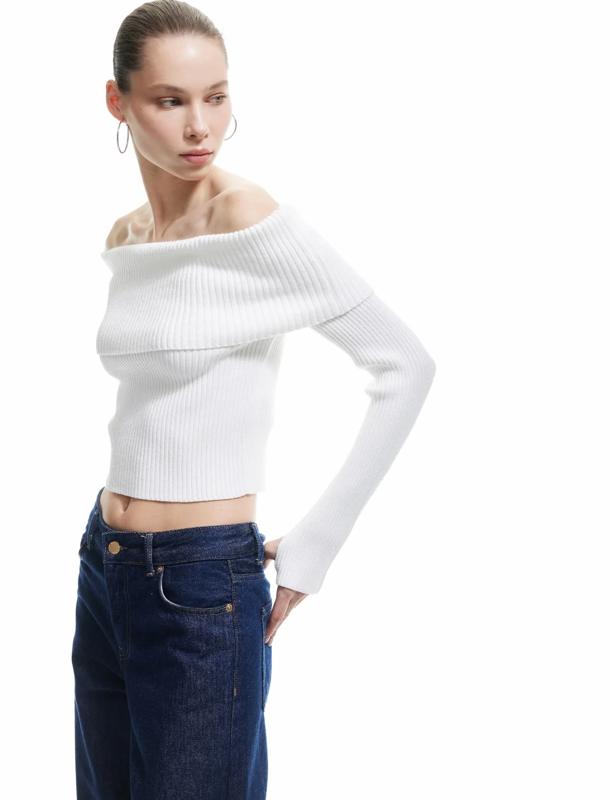 Design: Strapless/off-shoulder, Duimopening; Halstype: Carmen hals; Motief: Effen; Extra's: Op staal naden; Pasvorm: Slanke pasvorm; Armlengte: Lange mouw; Lengte: Normale lengte