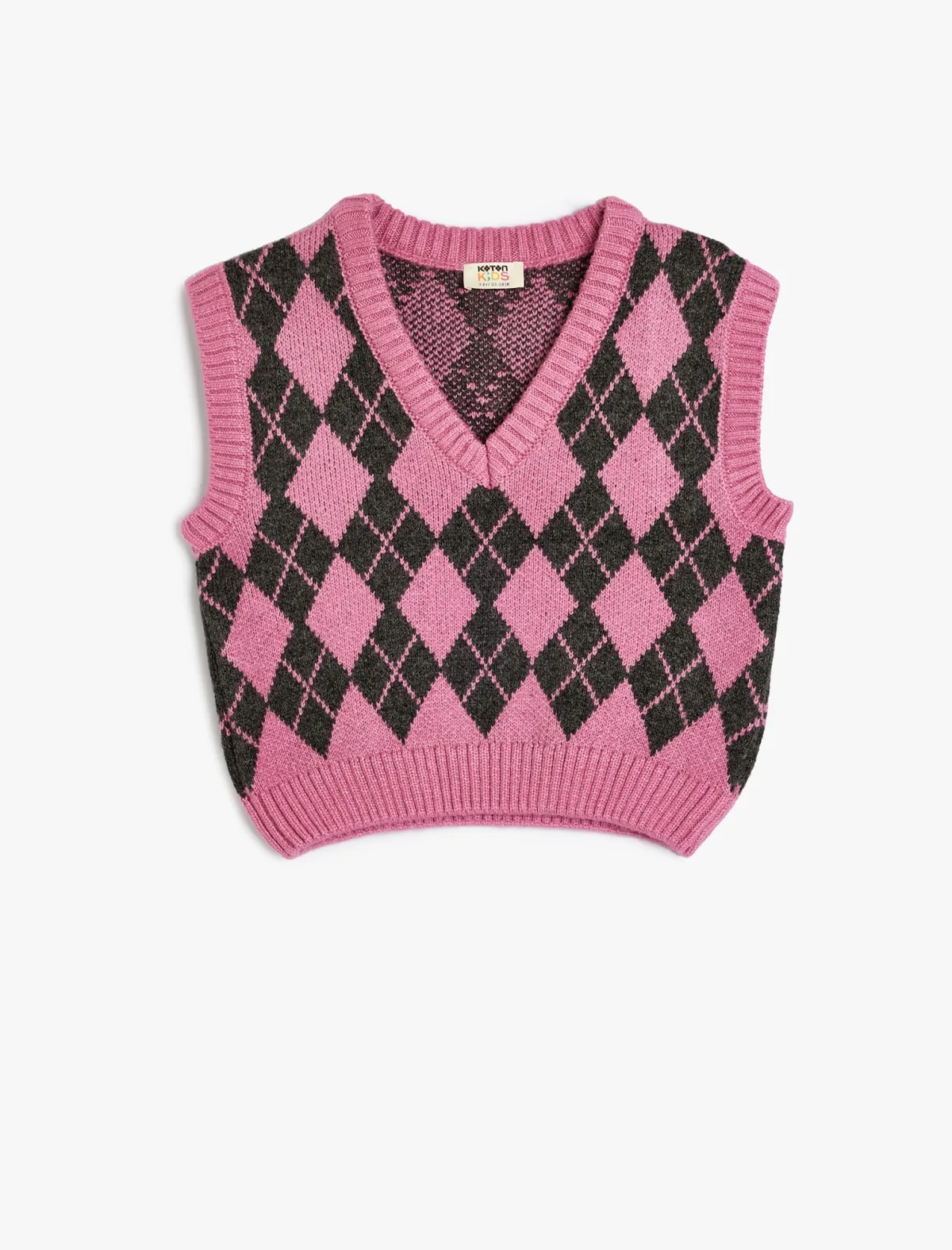 Design: Geribbelde kraag; Materiaal: Knitwear; Halstype: V-hals; Extra's: All-over patroon; Pasvorm: Normale pasvorm; Armlengte: Mouwloos; Lengte: Korte pasvorm