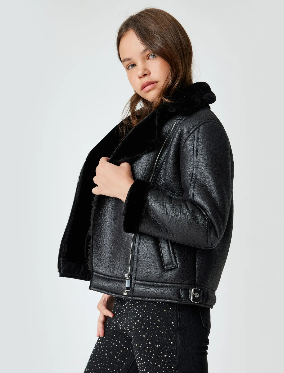 Design: Rechte zoom, Zakken aan de zijkant, Ritszakken aan de zijkant; Type sluiting: Ritssluiting; Type jas: Bikerjack; Voering: Warm gevoerd; Materiaal: Imitatieleder; Motief: Effen; Extra's: Op staal naden, Met faux bont trim, Wijdte verstelbaar; Pasvorm: Losse pasvorm