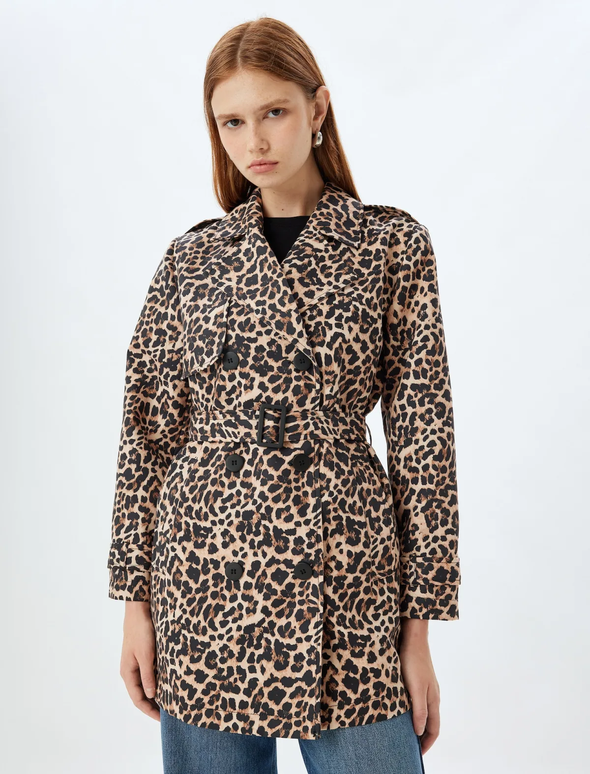 Type mantel: Trenchcoat; Design: Revers kraag; Type sluiting: Knoopsluiting; Voering: Licht gevoerd; Motief: Dierenprint; Extra's: All-over patroon; Pasvorm: Normale pasvorm; Lengte: Normale lengte