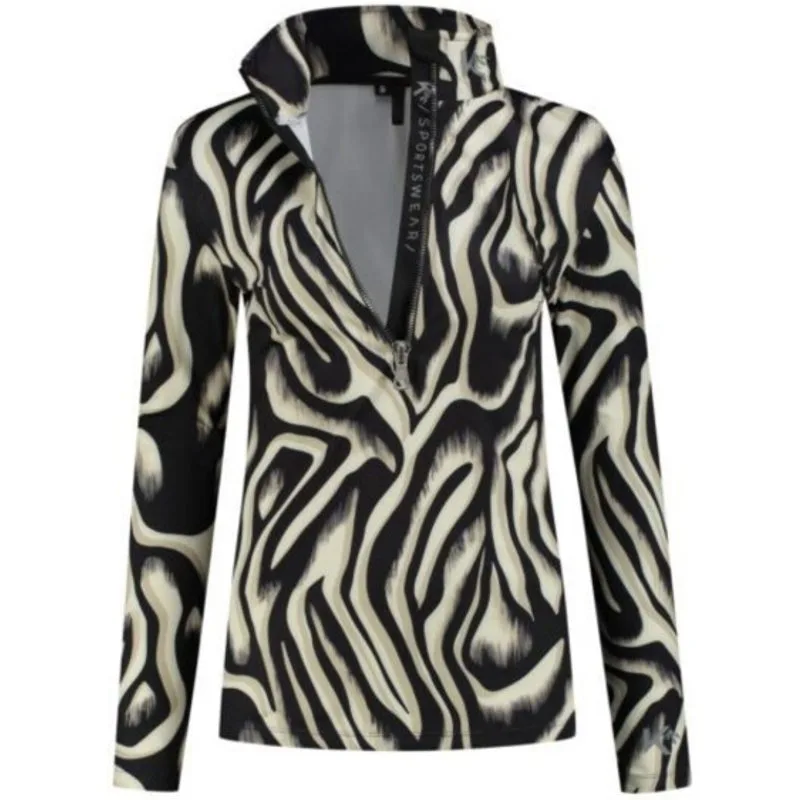 Kou Wildprint Ski Pully Dames Zwart dessin S