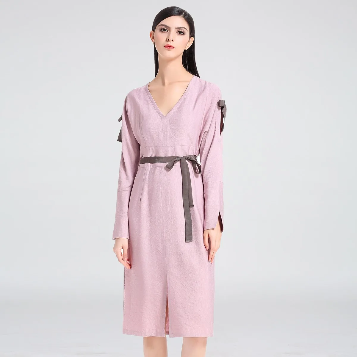 Edgy en moeiteloos, deze jurk een geweldige stijlverklaring voor de zomer. Speelachtige "Gros Grain" bogen op mouwen en taille hebben een vleugje verfijning. De vleermuismouwen, V-klare en gemonteerde taille brengt een echt elegant silhouet naar je figuur en houdt het item gemakkelijk te dragen. Mooie gestructureerde viscose flanel bekleed met een zeer zachte 100%katoenen voering. Combineer het met ballerina's voor een heupdag of met hakken sandalen voor chique avonden. Bestaat in mintgroen of lichtroze. Productdetails: • V halslijn • Lange vleermuismouwen • Midi Lengte: 110 cm • Terug verborgen rits en knop