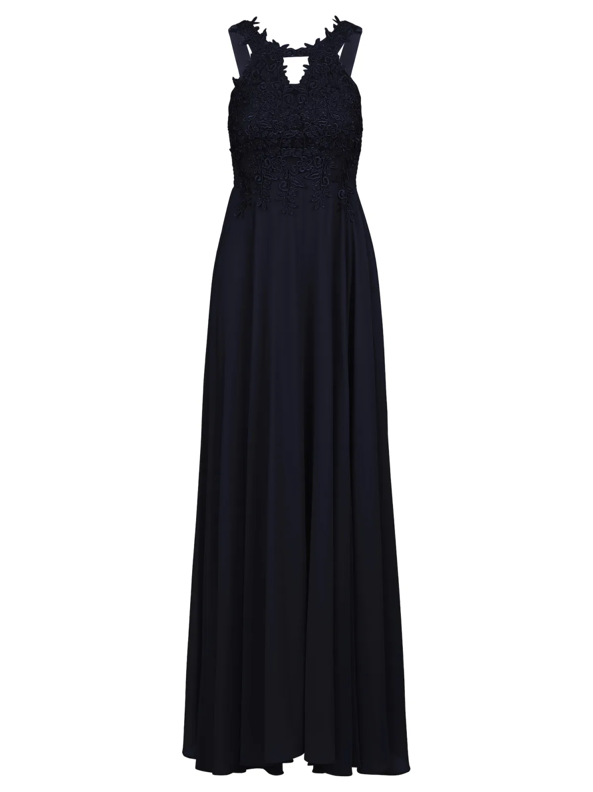 Design: Rechte zoom; Materiaal: Chiffon; Halstype: Ronde hals; Motief: Effen; Soort bandjes: Haltermodel; Details: Cut-outs, Borduursels, Gedrapeerd; Extra's: Gladde stof; Lengte: Lang/maxi; Snit: Getailleerd; Pasvorm: Slanke pasvorm; Armlengte: Mouwloos