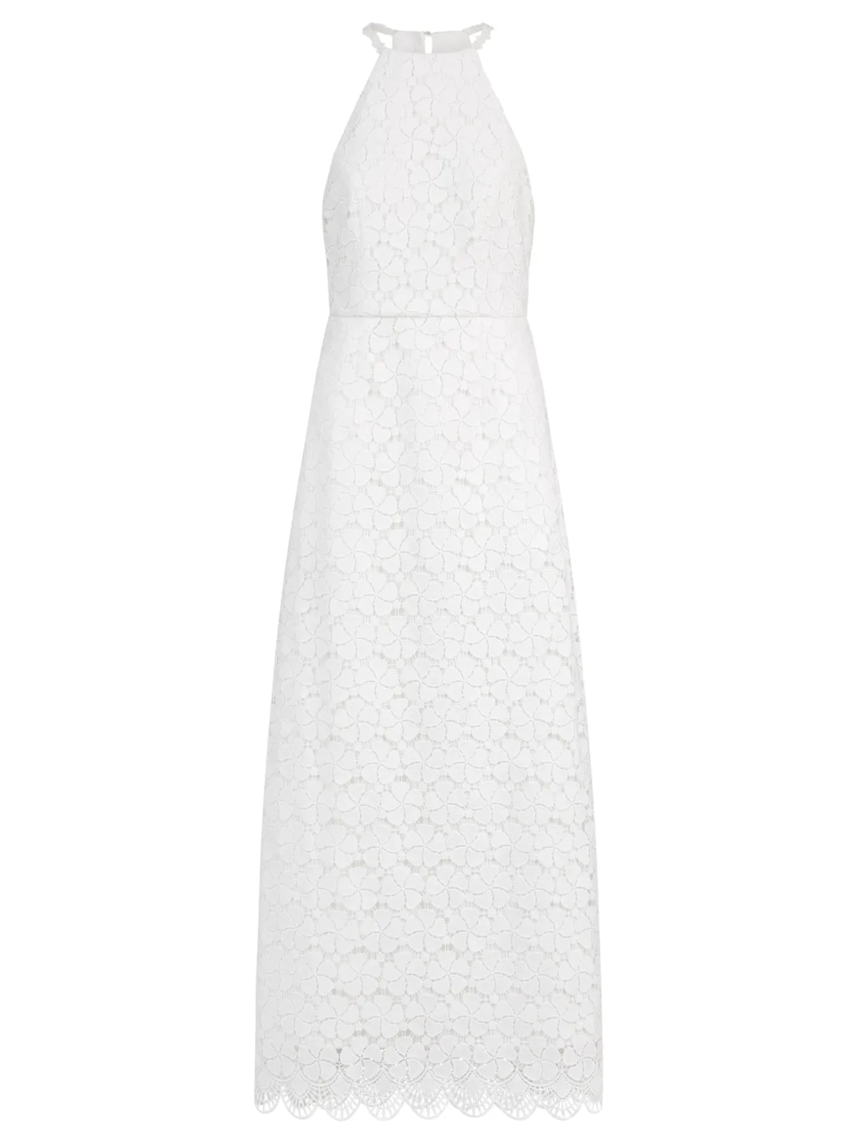 Design: Keyholesluiting, Zakken aan de zijkant; Type sluiting: Knoopsluiting; Motief: Effen; Soort bandjes: Haltermodel; Details: Kant; Extra's: Applicaties, Op staal naden; Lengte: Lang/maxi; Pasvorm: Normale pasvorm; Armlengte: Mouwloos