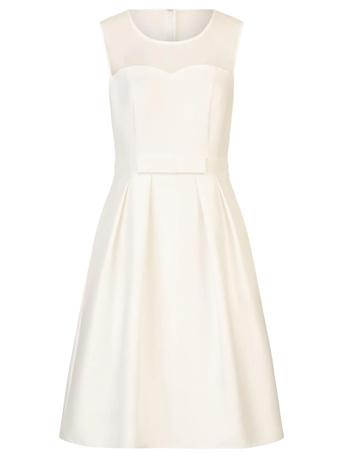 Design: Rug rits; Type sluiting: Ritssluiting; Halstype: Ronde hals; Motief: Effen; Soort bandjes: Brede bandjes; Details: Plooien; Extra's: Licht transparant; Lengte: Knielengte; Snit: Getailleerd; Pasvorm: Slanke pasvorm; Armlengte: Mouwloos