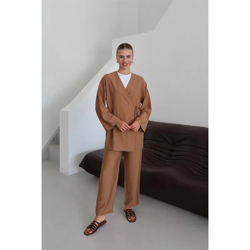 Kreukellook Textured Kimono Pak Bruin