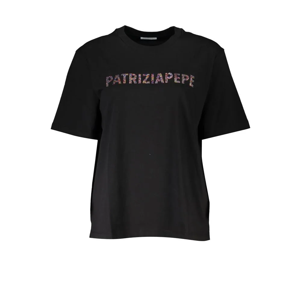 Laat je stralen, val op en geef jezelf de ruimte om jezelf uit te drukken. Dit Patrizia Pepe T-shirt biedt moeiteloze stijl en comfort de hele dag door. Gemaakt van puur katoen voor een zacht gevoel, heeft het een ontspannen pasvorm die prachtig valt. De ronde hals en korte mouwen creëren een klassieke silhouet, terwijl het meerkleurige kristallen Patrizia Pepe-logo een vleugje sprankeling toevoegt. Geniet van de onderhoudsvriendelijke constructie, perfect voor je dagelijkse garderobe. Kleed het up of down; dit T-shirt past naadloos in elke look.