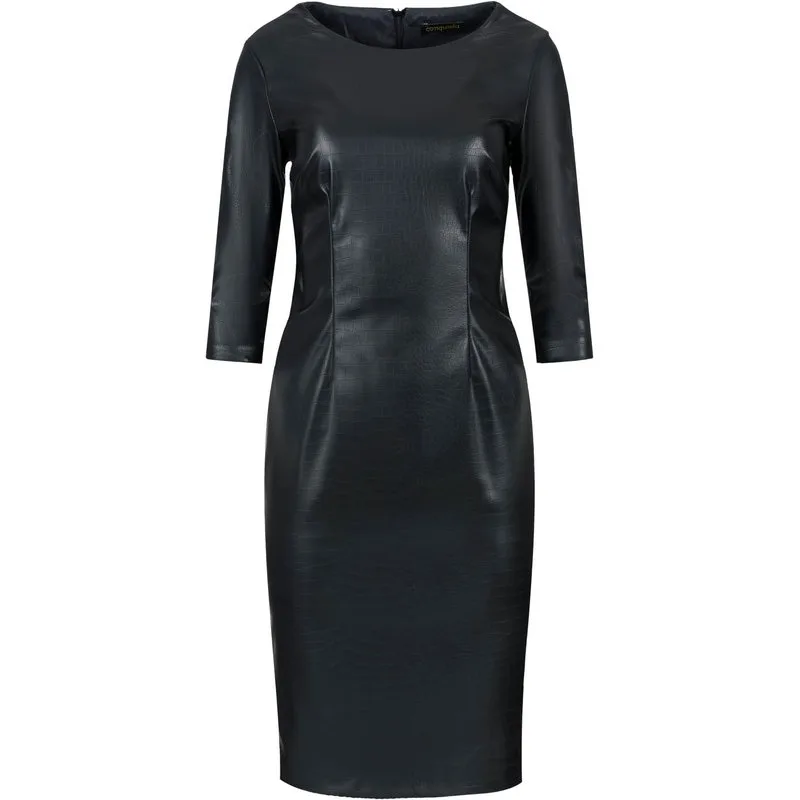 Deze jurk is gemaakt van imitatie krokodillenleer. Het heeft ¾ lengte mouwen en sluit op de rug met een verborgen ritssluiting. De jurk is volledig gevoerd.