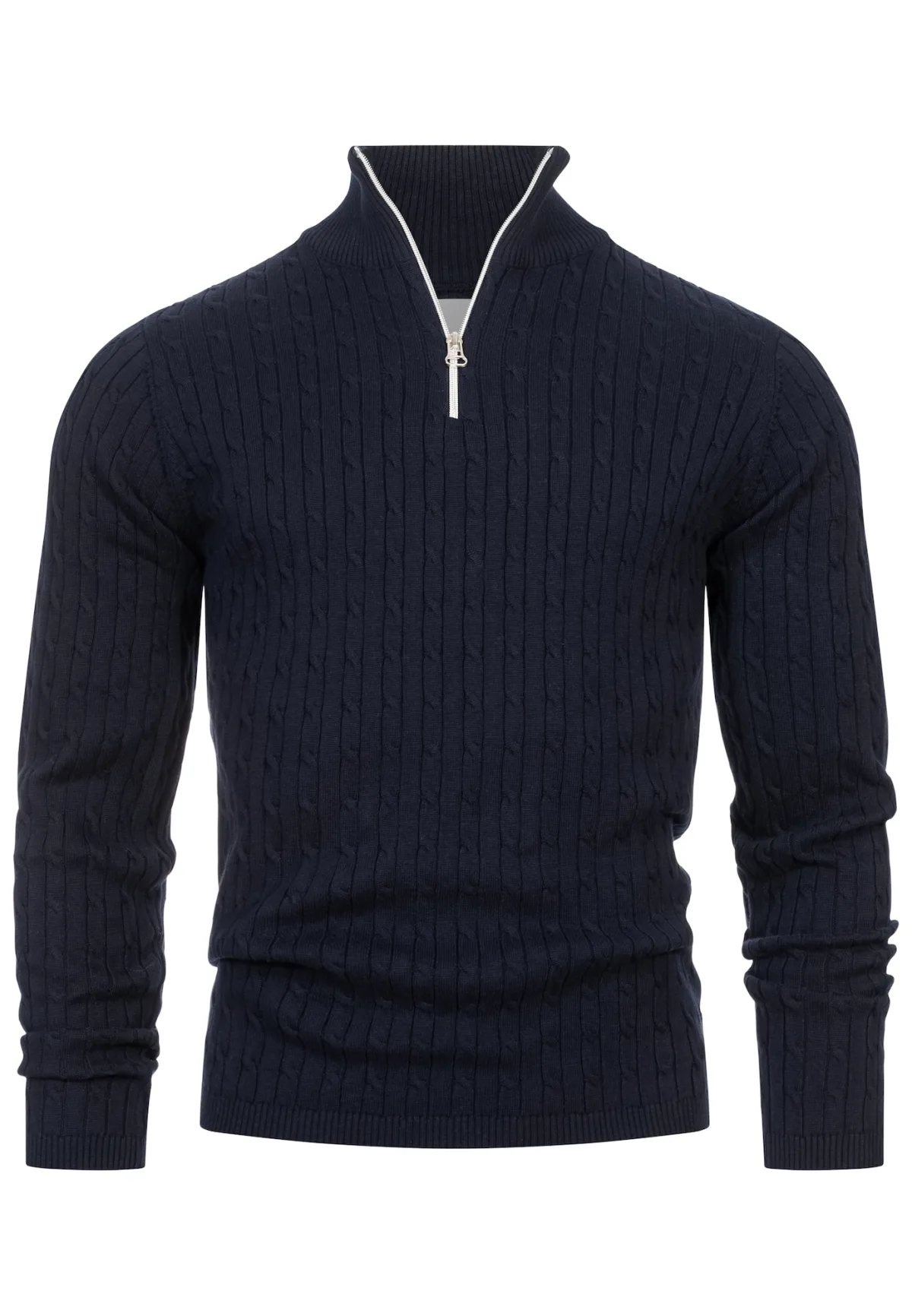 Design: Halve rits; Type sluiting: Ritssluiting; Materiaal: Knitwear; Halstype: Schipperskraag; Motief: Effen; Extra's: Gestructureerd oppervlak, Op staal naden; Pasvorm: Normale pasvorm; Armlengte: Lange mouw
