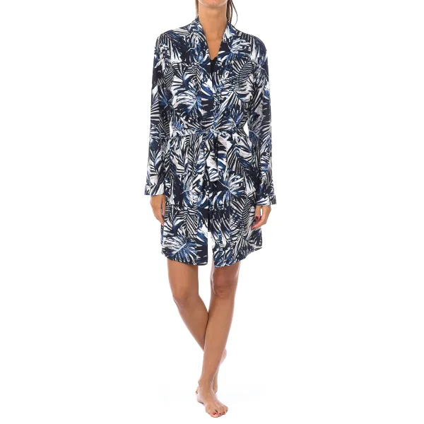 Damesbadjas met 3/4 mouwen. Wikkeljurk met geribde afwerking. Sluiting met bijpassend koord. Naden in toon zichtbaar. Samenstelling: 100% polyester Onderhoud: Handwas. - Geen bleekmiddel gebruiken. - Geen droger gebruiken. - Ondersteunt strijken. - Niet chemisch reinigen.
