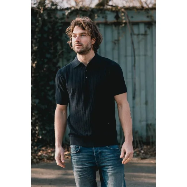 Deze gebreide 'Vertical' polo heeft een normale pasvorm. Hij heeft een klassieke puntkraag, een ton-sur-ton drieknoopssluiting en korte mouwen. Gedetailleerd met geribbelde uiteinden. Het model is gemaakt van 100% biologisch katoen.