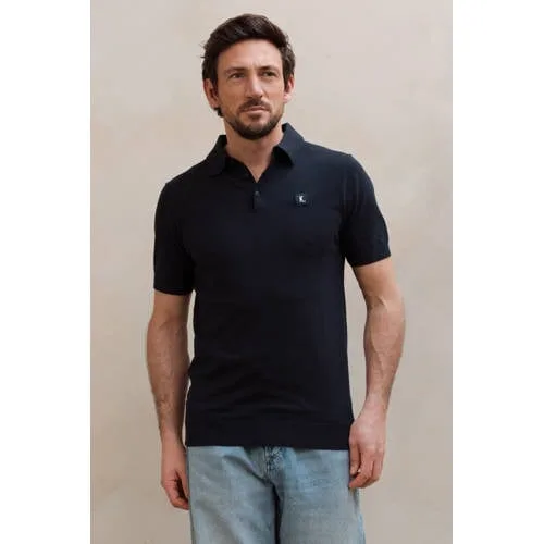 Kultivate regular polo fijn gebreid donkerblauw