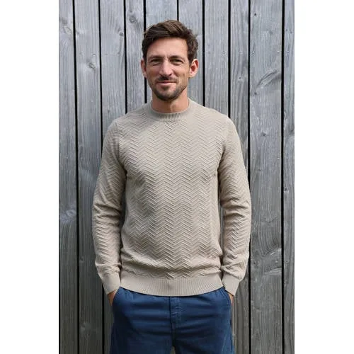 Deze Kultivate trui voor heren heeft een regular pasvorm en lange mouwen. De trui is gemaakt van 100% katoen met een ronde hals. Je ziet een ingebreid patroon, textuur en geribde boorden.