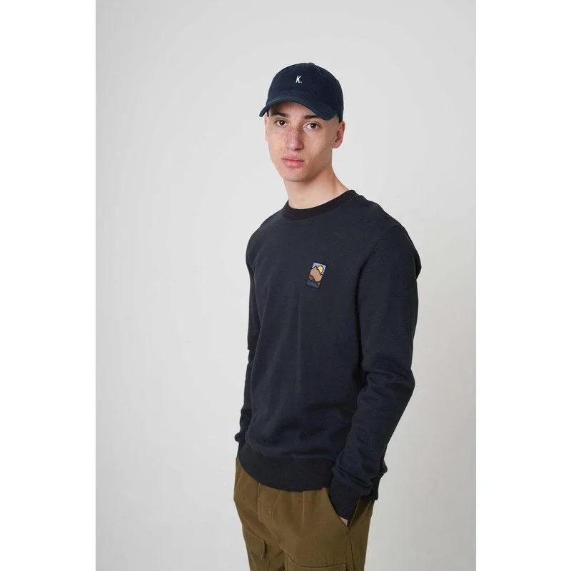 Sweater van Kultivate met een opdruk van een berg op borsthoogte en de rug. Dit model heeft lange mouwen en een ronde hals. De sweater is afgewerkt met ribgebreide boorden. Machinewas 30°c, Niet bleken, Niet in de droger, Niet stomen, Warm strijken max 150°c