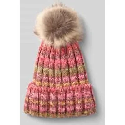 Gebreide muts voor dames van Kurt Beines;Materiaalmix met wolgehalte;Brede omslag;Grof tricot;Pompons van imitatiebont