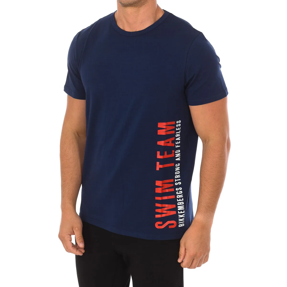 Kurzärmliges T-Shirt von Bikkembergs. Marineblaue Farbe Rundhalsausschnitt mit geripptem Abschluss. Markenname auf der Seite. Bequemer und atmungsaktiver Stoff. Nähte im Ton gesehen. Zusammensetzung: 95 % Baumwolle, 5 % Elastan Bei maximaler Temperatur waschen. 40ºC. -Benutzen Sie keine Bleiche. -Unterstützt die chemische Reinigung. - Ermöglicht die Verwendung eines Trockners. -Bügeln bei maximaler Temperatur. 130ºC.