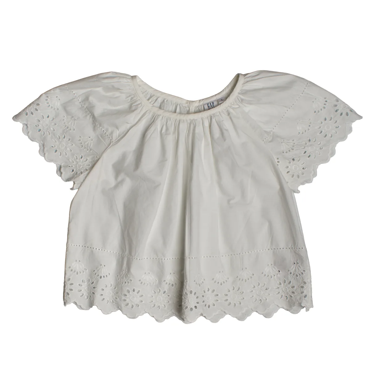 Bestickte Bluse für Mädchen mit zartem Design und sommerlichem Feeling. Diese GAP Mädchenbluse besticht durch ihre florale Stickerei und den gewellten Besatz und verleiht ihr einen romantischen und frischen Touch. Die lockere, fließende Silhouette ermöglicht viel Bewegungsfreiheit und ist ideal für warme Tage. Details: Kleidungstyp: Kurzarmbluse für Mädchen. Design: Blumenstickerei mit gewelltem Finish. Hals: Weit und gerafft, leicht anzuziehen. Verschluss: Knopf auf der Rückseite. Material: Leichte und atmungsaktive Baumwolle. Passform: Locker und fließend, ideal für den Sommer. Eine frische und charmante Mädchenbluse, perfekt für die Kreation leichter Looks mit einer zarten und femininen Note. Komposition: 100% Baumwolle Pflege: Maschinenwäsche in kaltem Wasser. Verwenden Sie kein Bleichmittel. An der Luft trocknen. Bei niedriger Temperatur bügeln. Reinige chemisch nicht.