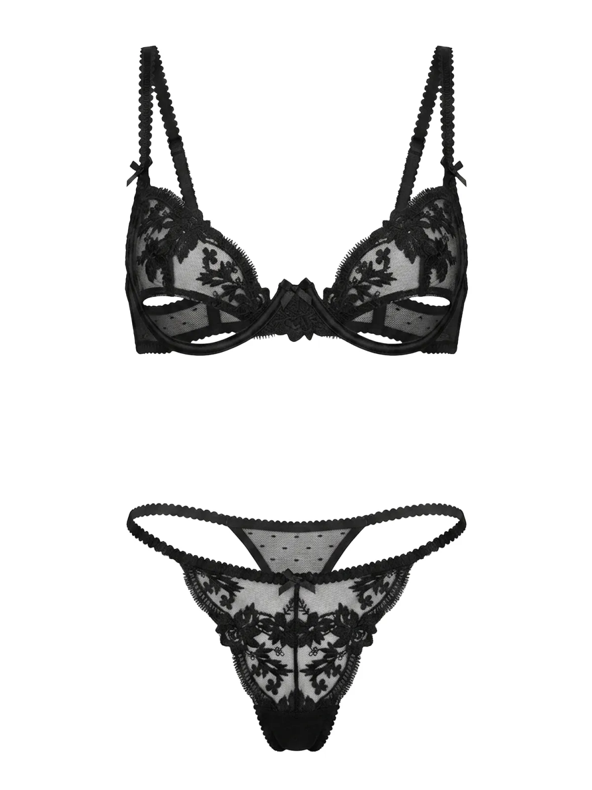 Cup soorten: Soft cup bh; Soort bandjes: Normale bandjes; Bh/bikini type: Balconette; Beugel: Met beugel; Materiaal: Tule; Motief: Bloemenprint; Details: Kant; Aantal per set: 2-delig