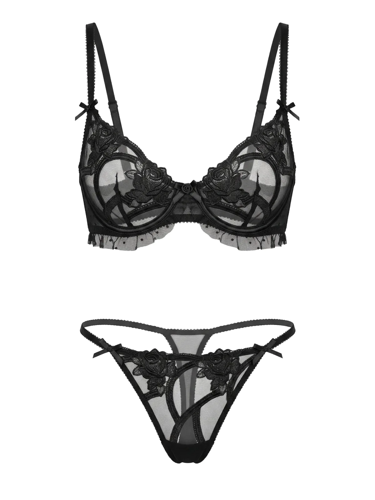 Cup soorten: Soft cup bh; Soort bandjes: Normale bandjes; Bh/bikini type: Balconette; Beugel: Met beugel; Materiaal: Tule; Motief: Bloemenprint; Details: Kant; Aantal per set: 2-delig