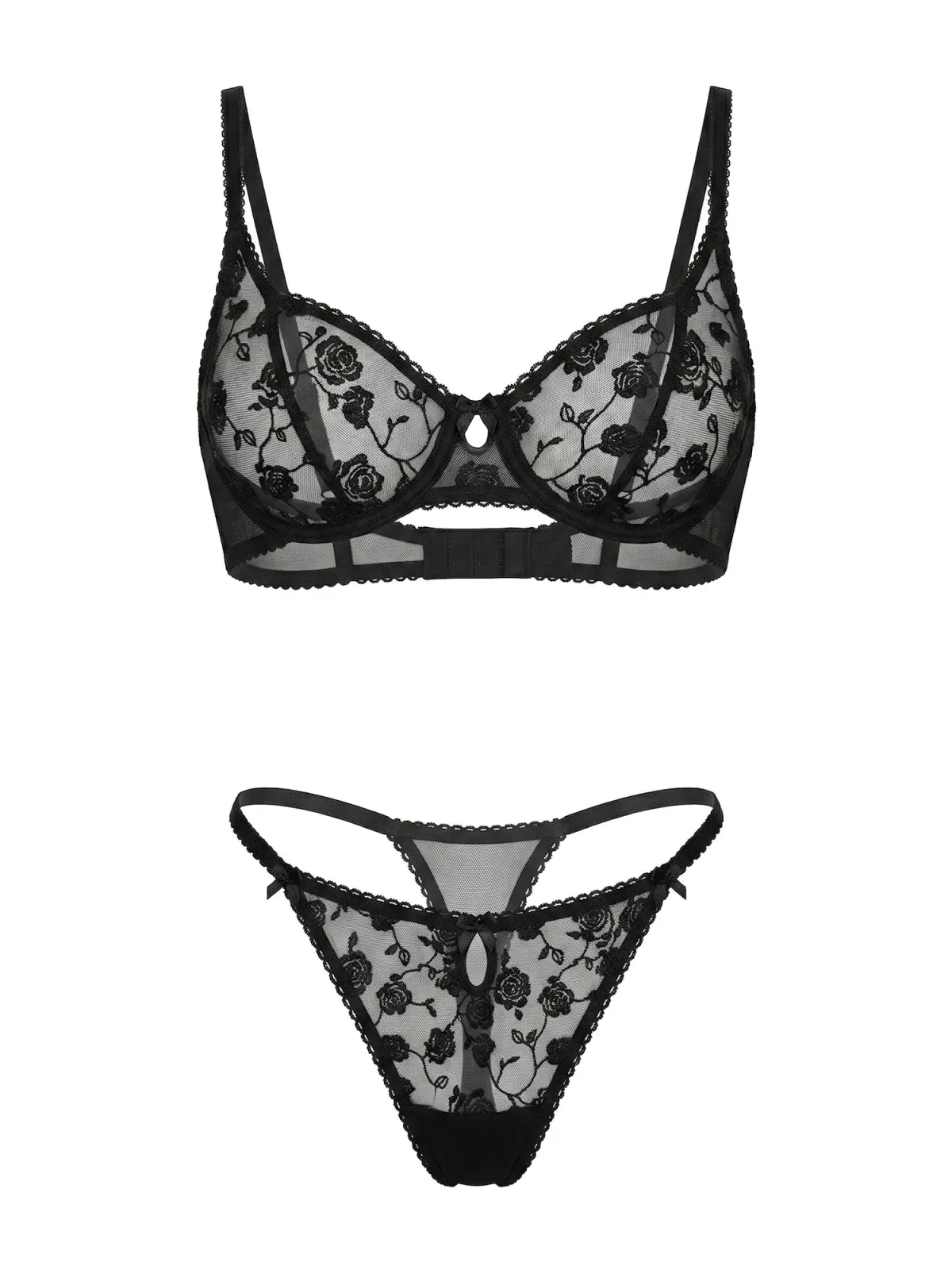Cup soorten: Soft cup bh; Soort bandjes: Normale bandjes; Bh/bikini type: Balconette; Beugel: Met beugel; Materiaal: Tule; Motief: Bloemenprint; Details: Kant; Aantal per set: 2-delig