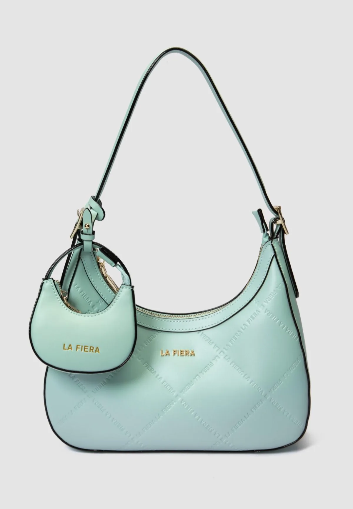 LA FIERA Mintgroene Schoudertas Gemaakt van Premium Gerecycled Leer. Tasafmetingen Lengte: 25,00 cm, Breedte: 7,00 cm, Hoogte: 15,00 cm. Duurzame Luxe Handtas met een Zacht Diamantpatroon Geperst Ontwerp. Geperste La Fiera Branding Door Heel de Tas voor een Verfijnde Handtekening Look. Inclusief een Bijpassend Verwijderbaar Muntgeldzakje voor Extra Functionaliteit. Afgewerkt met Hardware in Gouden Tinten voor een Verhoogde, Gepolijste Stijl. Slanke Schouderband voor Comfortabel Dagelijks en Avondgebruik. Compacter maar Praktisch Interieur voor Dagelijkse Essentiële Zaken. Lichte, Veelzijdige Tas Ideaal voor Dag- tot Nachtstyling. Perfecte Ecologische Accessoire voor Moderne, Minimalistische Garderobes. Wordtgeleverd met een Gepersonaliseerde La Fiera Stofzak om de Staat te Behouden. Compleet met een Gepersonaliseerde La Fiera Doos, Ideaal om te Cadeau te Geven.