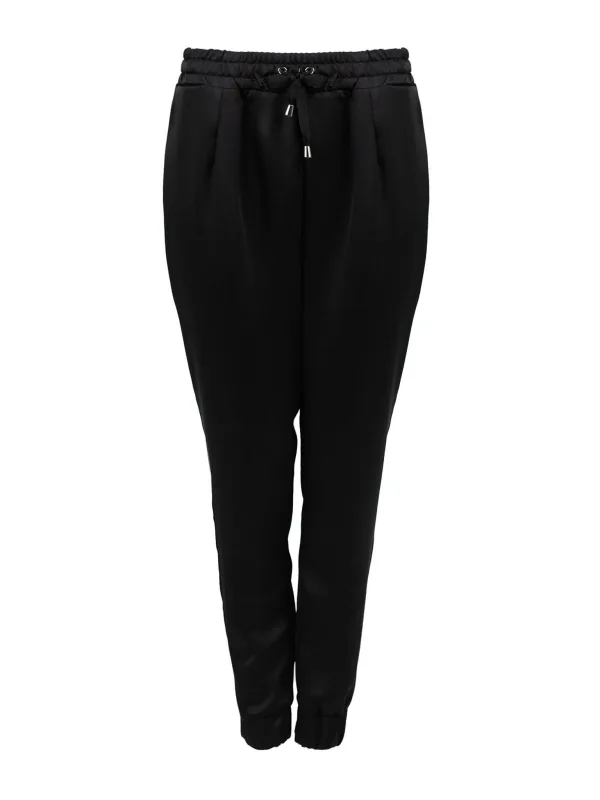 Eenvoudige stijl Elastische tailleband, extra verstelbaar met trekkoord Laag uitgesneden Breder bij de dijen, met taps toelopende pijpen Twee zakken voor Beenuiteinden met manchetten Gemaakt van hoogwaardige stof Gemaakt in Italië