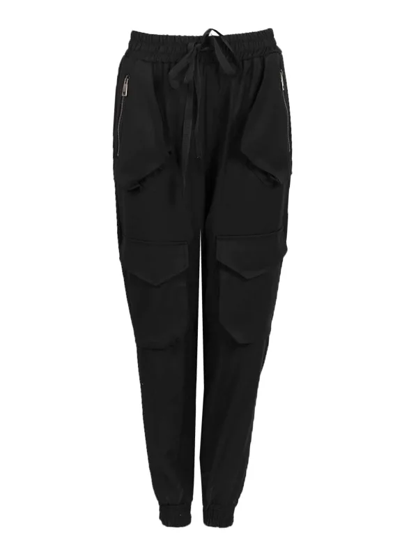 Unisex Eenvoudig model Met elastiek in de taille, ook verstelbaar met een bandje Met verlaagd kruis Met losse broekspijpen Aan de voorkant twee zakken met ritssluiting Op de broekspijpen twee zakken met kleppen Ritssluitingen met merklabels Broekspijpen afgewerkt met boorden Gemaakt van hoogwaardige stof Geproduceerd in Italië