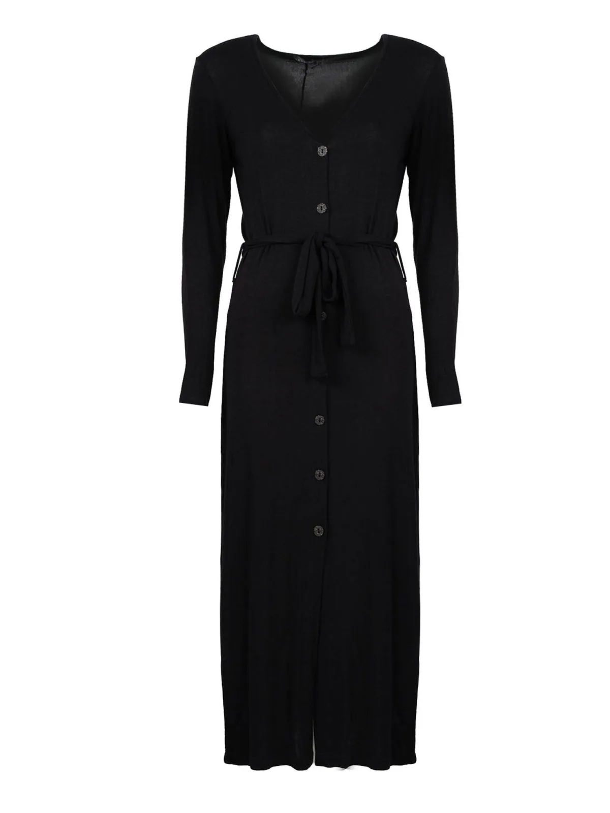 Eenvoudig, lang model Met V-halslijn Met decoratieve knopen Gestrikt in de taille Gemaakt van hoogwaardige stof Gemaakt in Italië