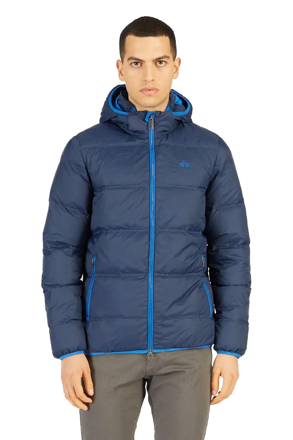 La Martina herenjas gewatteerd met ganzendons met een ritssluiting aan de voorkant. Hoog kraag en capuchon die aan de voorkant sluit, het logo is op de voorkant geborduurd.