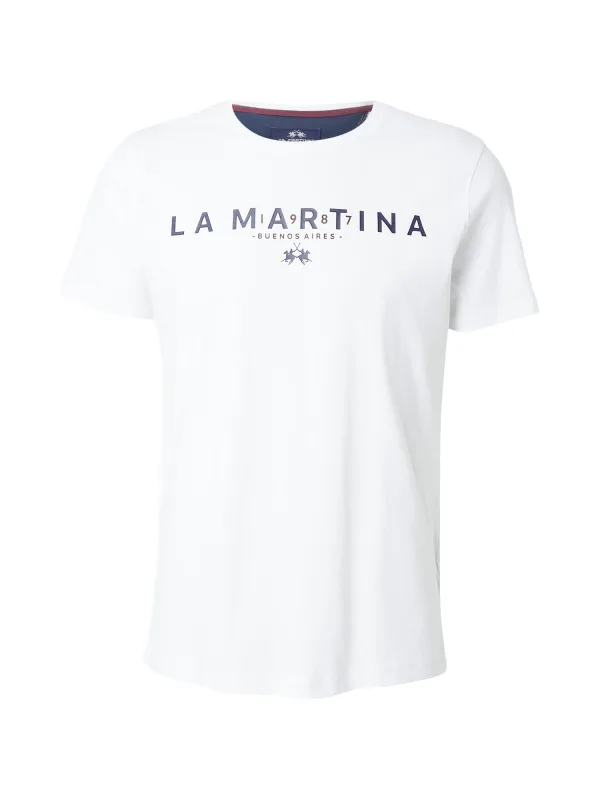 La Martina Shirt donkerblauw / donkerbruin / wit Prijzen