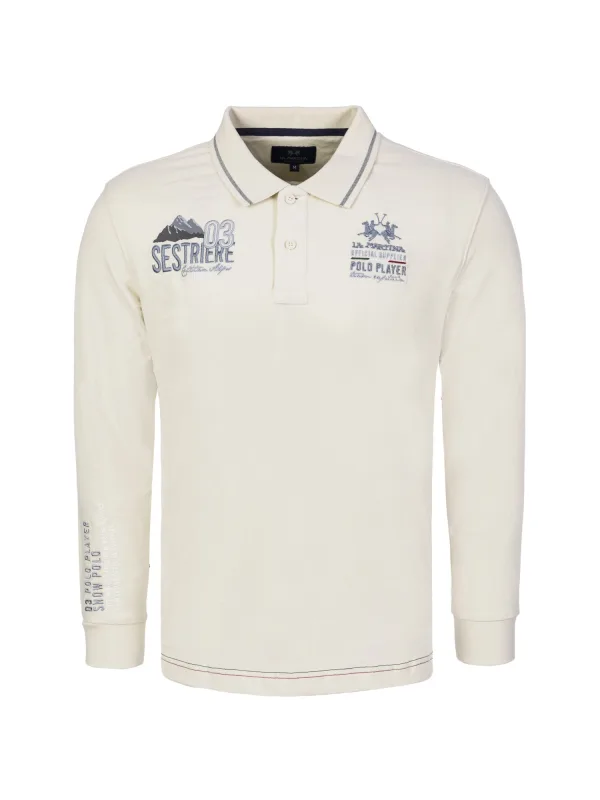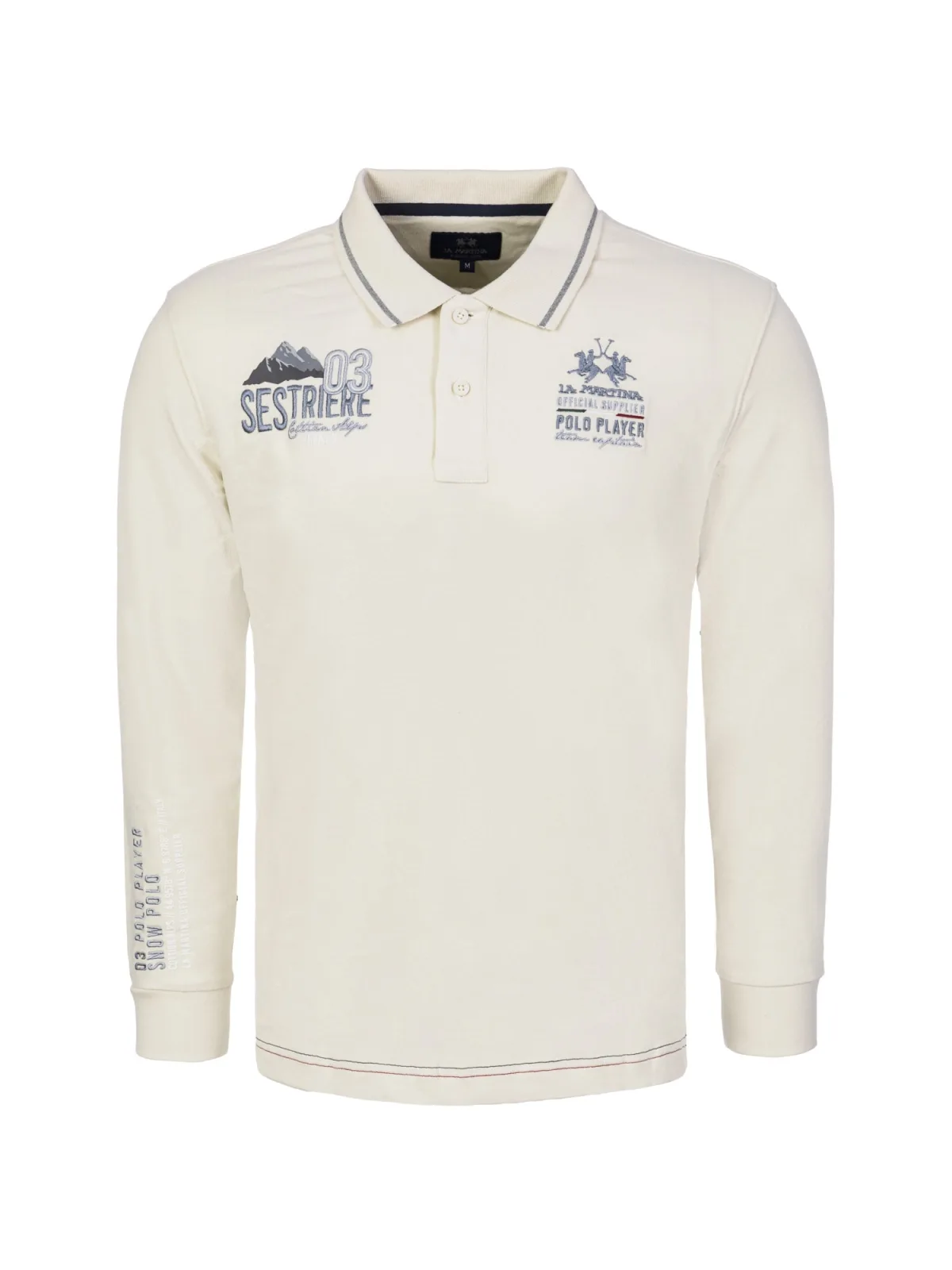 Specificaties: La Martina Shirt ‘ MBP301 ‘ crème / blauw / wit
