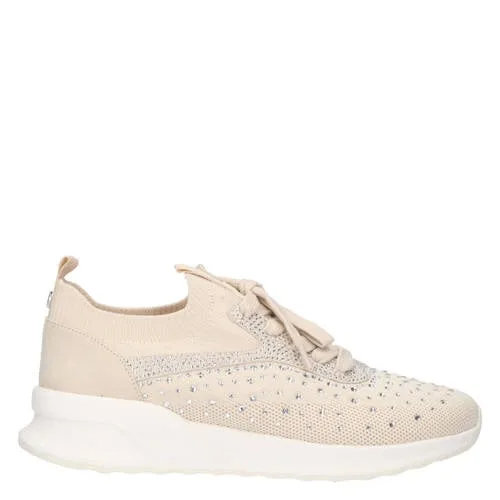 Deze La Strada beige sneaker is een lichte, moderne schoen voor elke dag. Het lage model heeft een flexibele knitted bovenkant die zacht om je voet sluit. De beige tint combineer je makkelijk met veel outfits en het all over patroon met subtiele strass steentjes geeft een verzorgde, vrouwelijke uitstraling zonder te opvallend te zijn.Comfort en details in één sneaker Laag model met platte zool, fijn voor dagelijks lopen en staan Normale leest, passend voor de meeste voetvormen Knitted bovenkant van textiel die soepel meebeweegt met je voet Textielen voering en binnenzool voor een zachte touch aan de binnenkant Rubberen buitenzool voor grip op verschillende ondergronden Vetersluiting, zodat je de pasvorm eenvoudig strakker of losser maakt All over print met strass steentjes voor een verfijnde, feminine lookVeelzijdig in je dagelijkse outfitsDeze sneaker draag je makkelijk onder een jeans, een luchtige broek of een simpele jurk. De neutrale beige kleur past goed bij zachte tinten, maar ook bij donker denim of zwart. Ideaal voor een dag in de stad, een afspraak of gewoon je dagelijkse ronde.La Strada: modieuze schoenen met oog voor detailLa Strada staat bekend om modieuze damesschoenen met een comfortabele pasvorm en herkenbare details. Het merk volgt trends in kleur en materiaal en vertaalt die naar schoenen die prettig dragen in het dagelijks leven. Zo kies je voor een schoen die er verzorgd uitziet en praktisch in gebruik is.Een veelzijdige sneaker die je garderobe eenvoudig compleet maakt.