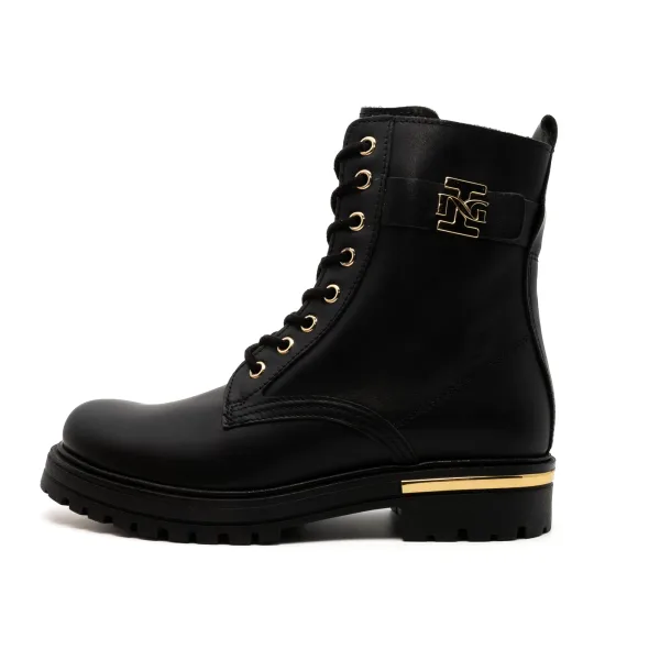 Kleur: Zwart 100 Bovenwerk: Leer Binnenkant: Leer Zool: Rubber Sluiting: Rits en veters Details Merklogo en gouden afwerking op de hiel Pasvorm: Normaal Gelegenheid: Vrije tijd